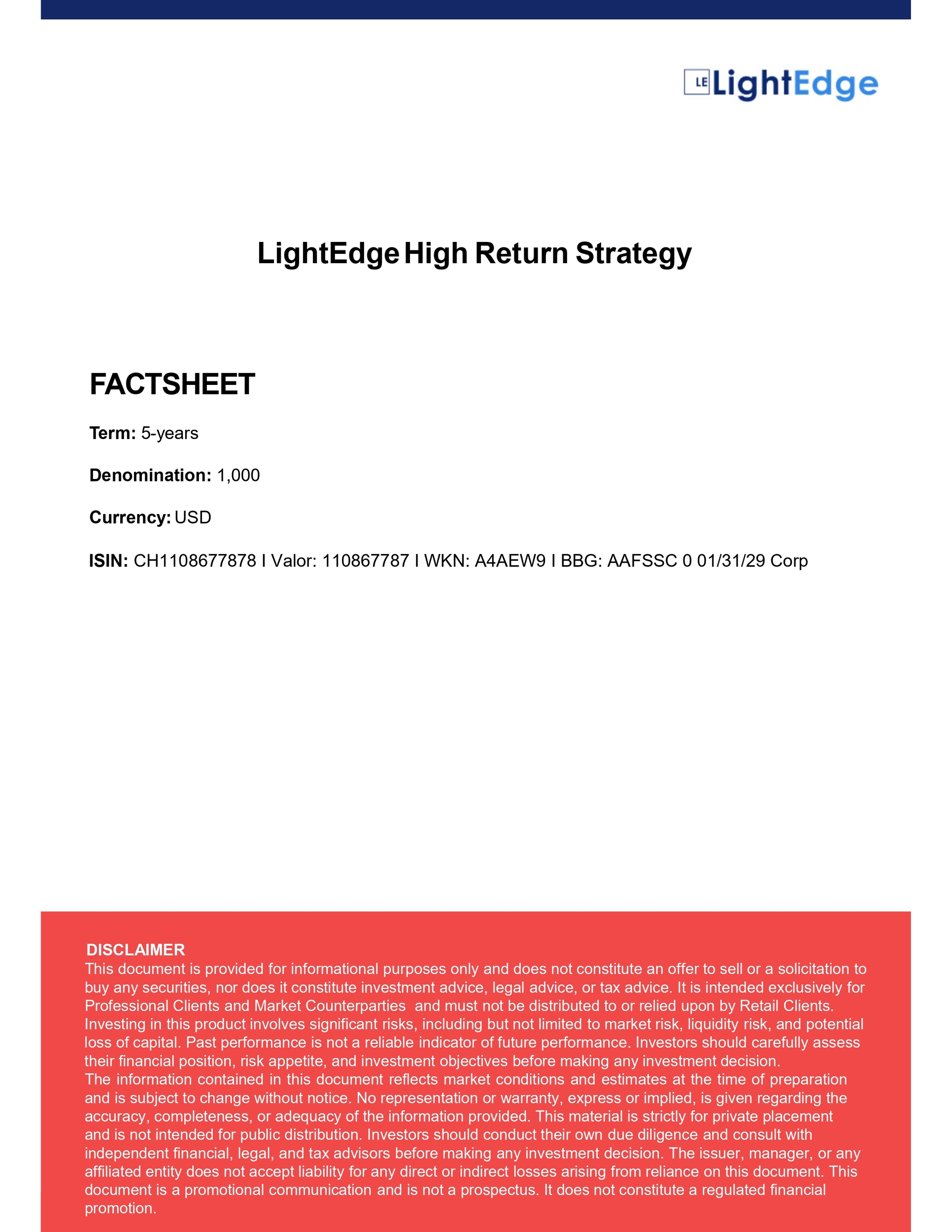This Term sheet contains a summary of all key investment terms, details, fees, and trading conditions.